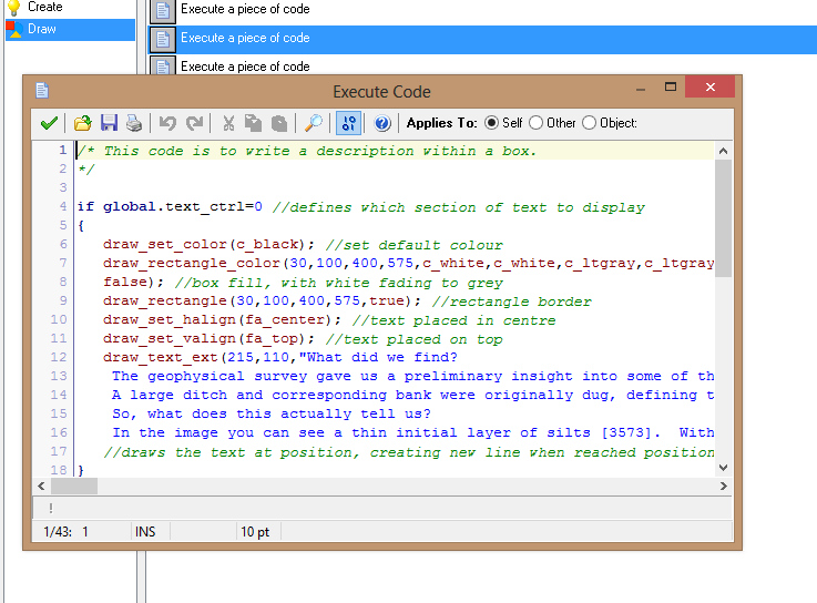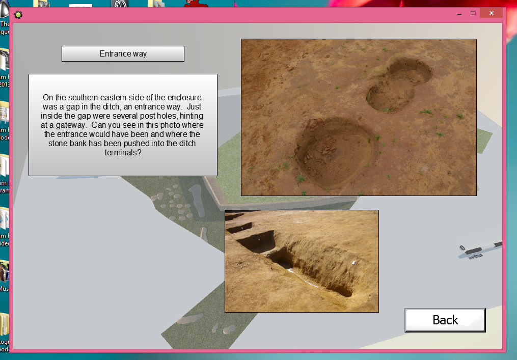 Another project I’m currently working on in instead a program for kids that allows them to interact with a roman soldier and help him carry out tasks. The aim of this is of course educational, and it displays the archaeological finds in a fun and interesting way that kids will enjoy. This one is made using a series of rooms that change every time you click on a certain portion of the map, depending on what the task is, i.e. if the soldier asks you to find the enclosure, then clicking on the enclosure changes the text.