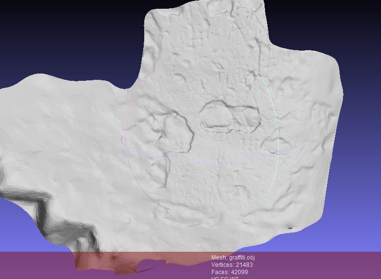 One of the main issues I was also having was that Meshlab kept on crashing when using certain filters or shaders, which meant I could only test out only some of the possible options. So when I made a model of a series of modern graffiti at Cardiff Castle the results were also deluding.